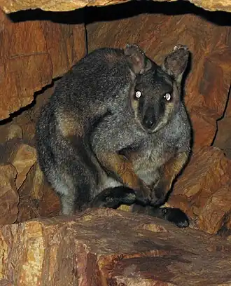 Quarante-six espèces de mammifères indigènes vivaient dans la région d'Uluru/Ayers Rock il y a quelques dizaines d'années. Les derniers contrôles indiquent qu'il en reste vingt-et-une. Des essais de réintroduction sont en cours pour des espèces disparues localement comme le phalanger renard, le lièvre-wallaby de l'ouest, le bilby, le bettongie de Lesueur et le wallaby des rochers[15]. Cette zone abrite aussi la taupe marsupiale. Les espèces de chauves-souris de la région sont au nombre de sept qui s'abritent le jour dans les grottes et les fissures d'Uluru/Ayers Rock et des Kata Tjuṯa/monts Olga. La plupart des chauves-souris se nourrissent de proies attrapées en vol dans un rayon de 100 mètres autour du rocher[15]. Une espèce de dasycercus, le seul mammifère de la région considéré comme espèce en danger a un domaine très réduit, une étroite bande de terre qui va du voisinage d'Uluru/Ayers Rock à la limite nord du parc.