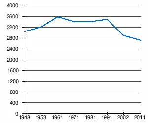 En 2011, l'âge moyen de la population était de 42,3 ans, 40,8 ans pour les hommes et 43,8 ans pour les femmes[5].