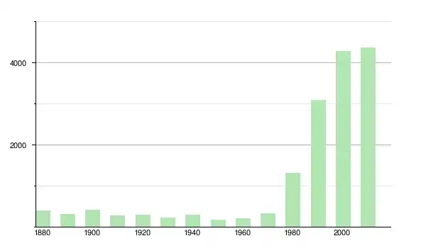| 1980 | 1 322 | ▲ +286,55 % | |
