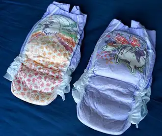 - ↑ (en-US) « Pampers UnderJams Absorbent Night Wear », PampersUS, (lire en ligne, consulté le )