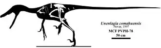 Unenlagia est un genre éteint de dinosaures à plumes, des théropodes carnivores de la famille des Droméosauridés, décrit en 1997[1].