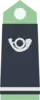 - tricorne, de teinte « vert forestier », à cor de chasse brodé « argent ».