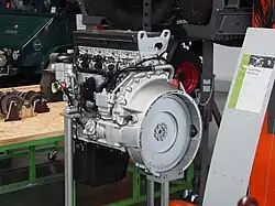 Les deux moteurs sont des moteurs diesel en ligne avec un alésage de cylindre de 110 mm et une course de piston de 135 mm, ce qui donne une cylindrée de 5 132 cm3 pour le quatre cylindres et de 7 698 cm3 pour le six cylindres. La compression est de = 17,6 et les moteurs sont équipés d'un turbocompresseur et d'un refroidissement des gaz d'échappement[57]. Contrairement à ses prédécesseurs, une injection directe à rampe commune à commande électronique est utilisée, qui permet jusqu'à cinq injections par cycle de travail et fonctionne avec une pression d'injection maximale allant jusqu'à 240 MPa [58]. La culasse a été entièrement repensée. Contrairement aux OM 904/906, les nouveaux moteurs sont dotés d'une culasse à flux transversal et de quatre soupapes en tête actionnées par des arbres à cames en tête (arbre à cames). Le calage des soupapes est variable, pour celui-ci, le réglage de l'arbre à cames du moteur essence M 272 de Mercedes-Benz a été installé[59]. Le réglage des arbres à cames est utilisé, entre autres, dans l'épuration des gaz d'échappement afin d'atteindre plus rapidement la température des gaz d'échappement requise pour le catalyseur[60]. L'épuration des gaz d'échappement fonctionne avec un filtre à particules de suie et une réduction catalytique sélective[61].
