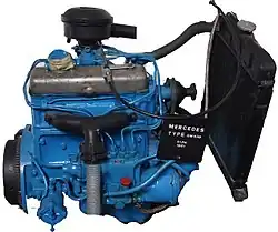- 1 2 Zwar gab es den Unimog 411 auch mit 36 PS (26,5 kW) Motorleistung, allerdings war diese Motorisierung nur für die Baumuster 411.114, 411.115 und 411.160 verfügbar, die insgesamt nur in sehr geringer Stückzahl und primär für bestimmte Abnehmer (portugiesisches Militär und Firma Gafner) gefertigt wurden. Darüber hinaus wurden diese Baumuster in Deutschland gar nicht angeboten. Somit ist die leistungsfähigste Motorisierung, die jedermann erwerben konnte, 34 PS (25 kW).