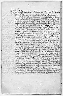 Le , Janusz Radziwiłł signe le traité de Kėdainiai, en plaçant le grand-duché sous la protection suédoise[1]. Le (O. S.), Janusz et Bogusław Radziwiłł signent un accord avec les Suédois dans leur château à Kėdainiai. Selon le traité, signé par les deux cousins au nom de toute la noblesse lituanienne, l'union de Pologne-Lituanie est déclarée nulle et non avenue. En échange d'une aide militaire contre la Russie, le grand-duché de Lituanie devient un protectorat de la Suède, avec une union personnelle joignant les deux États. En outre, La Famille devait être donnée à deux principautés souveraines découpées d'après le tracé de leurs terres à l'intérieur du grand-duché et la noblesse lituanienne conserve ses libertés et privilèges.