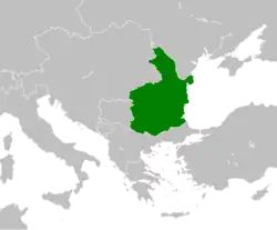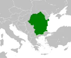 Les partisans d’une union bulgaro-roumaine ont souvent vu dans le Second Empire bulgare une base historique commune. Les historiens débattent aujourd’hui de l’héritage national de cet État, parfois revendiqué à la fois par la Bulgarie et la Roumanie.[9] Cet empire est défait par l’Empire ottoman à la fin du XIVe siècle,[10] qui étend ensuite son autorité aux principautés roumaines de Valachie (au XVe siècle)[11] et de Moldavie (au XVIe siècle).[12] Contrairement à la Bulgarie, ces principautés ne sont jamais pleinement intégrées comme provinces, mais restent des États vassaux.[3]