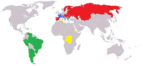 Pays alignés (unilatéralement) Argentine, Bulgarie, Chili, Haïti, Indes occ. danoises, Luxembourg, Pérou, République dominicaine, Serbie, Venezuela