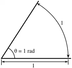 L'unité d'angle du Système international est le radian (symbole : rad), défini comme l'angle sous-tendant, depuis le centre d'un cercle, un arc de même longueur que son rayon.