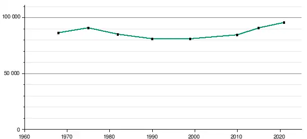 Après un plus-haut en 1975 à 91 035 habiatnts, la population a stagné jusqu'en 1999 à 80 000 habitants pour croître à nouveau depuis cette date, atteignant un plus-haut à 93 623 habitants en 2019.