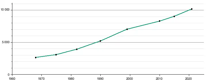 - ↑ « Population en historique depuis 1968 - Unité urbaine 2020 de Cournonterral. », sur Insee, (consulté le )