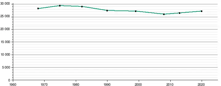 - ↑ « Population en historique depuis 1968 - Unité urbaine 2020 de Fougères (35401). », sur Insee, (consulté le )
