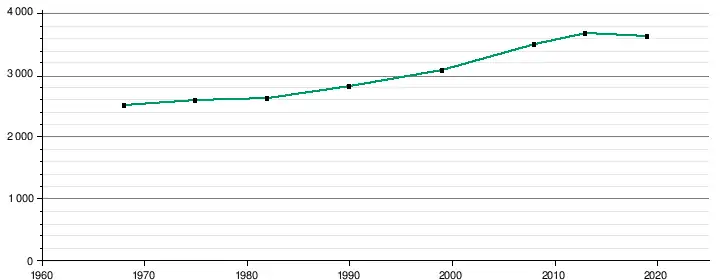 En 2019, sa densité de population s'élève à 180 hab/km2.