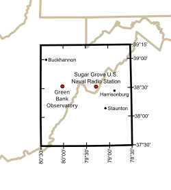 Cette zone protège aussi des antennes et récepteurs de renseignement électronique de la NSA, et jusqu'en [1] d'une unité de renseignement militaire de l'US Navy, à Sugar Grove Station.
