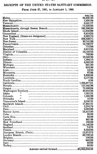 - ↑ Elle collecta et distribua, sur la durée du conflit, 15 millions de $ de fournitures médicales (Stillé, p. 114).