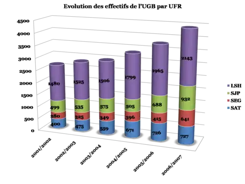 Évolution des effectifs de l'UGB entre 2001 et 2007.
