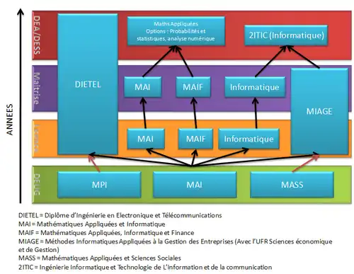 Depuis 2002/2003, en plus du DEUG MPI qu’elle gère, la section prend en charge la filière du Diplôme des ingénieurs en électronique et télécommunications (DIETEL).