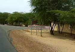 L’université se trouve à une dizaine de kilomètres de Saint-Louis. On aperçoit la tour caractéristique de la bibliothèque centrale depuis la route nationale N2 qui mène à Richard-Toll ou la frontière mauritanienne.