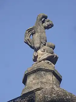 En contrebas de la Vierge, des deux côtés, se trouvent quatre anges, tous d’albâtre, dont deux de grandes dimensions, se tenant tous debout sur une volute, les jambes légèrement repliées et tout le corps reposant sur l’une des deux, et serrant dans les bras qui un instrument de musique, qui un petit édifice avec de petits personnages. Les cheveux, les plumes des ailes, et la tunique, semblant flotter sous l’effet d’une légère brise, sont minutieusement travaillés et dégagent une forte impression de réalisme et de dynamisme[15].