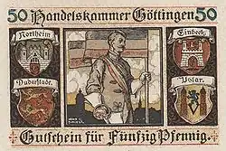 L'édition de la troisième et ultime série des billets de Deutsche Mark, en 1989, est caractérisée par la représentation de quatre célébrités de l'université de Göttingen (sur neuf personnalités historiques allemandes) : Carl Friedrich Gauss (billet de 1dix DM), Paul Ehrlich (billet de deux cents DM), Jacob Grimm et Wilhelm Grimm (billet de mille DM). On peut reconnaître sur le billet de dix DM, en arrière-plan de la figure de Gauss, quelques édifices historiques de l'université, dont l'observatoire et la grande halle d'entrée.