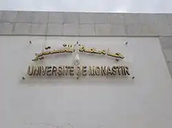 L'université de Monastir (arabe : جامعة المنستير) ou UM est une université tunisienne pluridisciplinaire basée à Monastir, avec sa propre autonomie financière et administrative[5], fondée en 2004 à la suite de la réforme du système éducatif universitaire[6],[7].