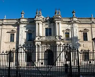 - ↑ L'ensemble du chapitre histoire est tiré de l'article Visión histórica general de la Universidad de Sevilla sur le site officiel de l'université de Séville. Voir également le site Historia de la Universidad de Sevilla qui propose un accès à une trentaine d'articles et documents portant sur l'histoire de l'Université.