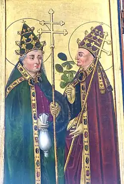 D'autres représentations moins courantes le montrent après sa décapitation, avec la tiare papale près de lui ; avec les idoles tombant d'une colonne pendant qu'il est décapité ; flagellé sur le bûcher ; assis dans un paysage alors qu'un jeune homme (saint Valérien) s'agenouille devant lui et qu'un prêtre tient un livre.