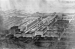 L'urbanisme du XVIIIe siècle est avant marqué tout par les plans d'embellissement des villes la plupart du temps afin de célèbre la grandeur du roi avec des places royales comme à Reims par exemple. Mais c'est à partir du développement industriel qui va engendrer une émigration importante vers les villes que va se développer la réflexion sur la ville avec un certain nombre d'utopies dont certaines verront le jour comme les Salines d'Arc-et-Senans avec Claude-Nicolas Ledoux[12] ou Letchworth Garden City due à Ebenezer Howard… On peut aussi évoquer le Phalanstère de Charles Fourrier et le Familistère de Guise dans l'Aisne avec Jean Baptiste Godin. On peut encore évoquer le baron Haussmann qui refaçonne Paris en partie à des fins politiques.