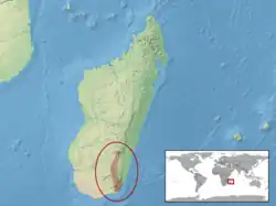 Cette espèce est endémique du sud de Madagascar[1]. Elle se rencontre dans les monts Anosy.