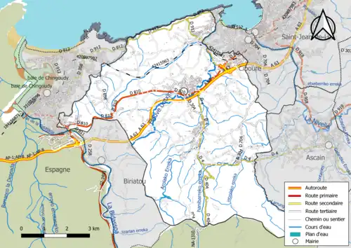 Le fleuve côtier l’Untxin prend naissance dans l'ouest de la commune et la traverse en direction nord-est, arrosant sur son passage le château d'Urtubie avant de se jeter dans la baie de Saint-Jean-de-Luz[12].