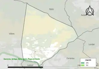 L’inventaire des zones naturelles d'intérêt écologique, faunistique et floristique (ZNIEFF) a pour objectif de réaliser une couverture des zones les plus intéressantes sur le plan écologique, essentiellement dans la perspective d’améliorer la connaissance du patrimoine naturel national et de fournir aux différents décideurs un outil d’aide à la prise en compte de l’environnement dans l’aménagement du territoire. Deux ZNIEFF de type 1[Note 4] sont recensées sur la commune[26] : le « cours de l'Ariège » (1 341 ha), couvrant 112 communes dont 86 dans l'Ariège et 26 dans la Haute-Garonne[27], et les « quiès calcaires d'Albiès à Caussou » (1 328 ha), couvrant 14 communes du département[28] et deux ZNIEFF de type 2[Note 5],[26] :