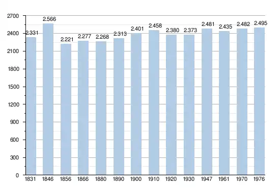 - Sources : INS, Rem. : 1831 jusqu'en 1970 = recensements, 1976 = nombre d'habitants au 31 décembre[1].