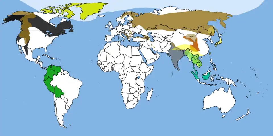 Les ours forment la famille de mammifères des Ursidés (Ursidae), de l'ordre des Carnivores (Carnivora). Le Grand panda, dont la classification a longtemps prêté à débat, est aujourd'hui considéré comme un ours herbivore au sein de cette famille[1],[2]. Il n'existe que huit espèces d'ours vivantes réparties dans une grande variété d'habitats, à la fois dans l'hémisphère Nord et dans une partie de l'hémisphère Sud. Les ours vivent sur les continents d'Europe, d'Amérique, et en Asie.