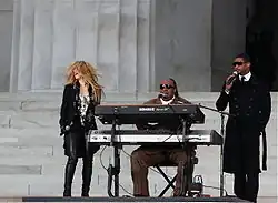 Usher jouant avec Stevie Wonder et Shakira aux We Are One: The Obama Inaugural Celebration at the Lincoln Memorial.