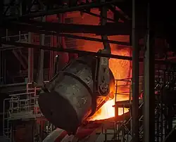 - ↑ Les sources mentionnent une capacité de production de 600 000 tonnes pour le total des trois hauts-fourneaux, soit 200 000 tonnes par haut-fourneau.