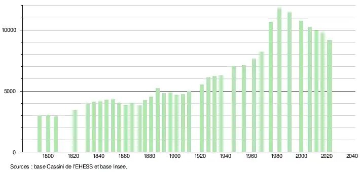 9 174 hab. (2022 en évolution de −6,22 % par rapport à 2016)