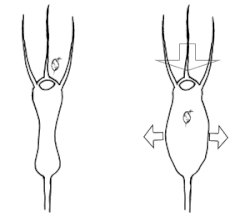 Les trappes, présentes par centaines, proportionnellement aux besoins en nutriments de la plante, sont d’origine foliaire[4]. Elles sont constituées de parois élastiques épaisses de deux couches de cellules et sont munies d’un « clapet ». Elles présentent 2 types de glandes. Tout d’abord les glandes quadrifides éparpillées sur l’ensemble de la surface interne qui ont pour but de sécréter les enzymes digestives et de réabsorber les nutriments, suivies des glandes bifides situées près du clapet de la trappe qui, elles, ont pour rôle d’évacuer l’eau en dehors des outres de manière à créer la dépression qui sera à l’origine de l’activation de la trappe [3].