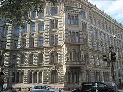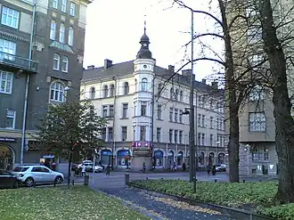 - ↑ Au bout de la rue se trouve le bâtiment en brique de Sanoma Osakeyhtiö au coin d'Erottajankatu et de Ludviginkatu.