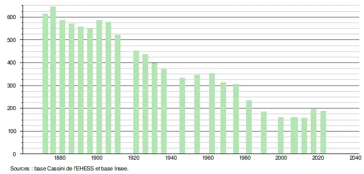 - ↑ Population municipale de référence en vigueur au 1er janvier 2025, millésimée 2022, définie dans les limites territoriales en vigueur au 1er janvier 2024, date de référence statistique : 1er janvier 2022.