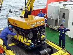 Des ROV ont aussi été utilisés pour explorer des épaves de plusieurs bateaux, dont le Titanic (pour la première fois ainsi filmé en 1987 à environ 3 820 mètres de fond), le Bismarck, ou le Central America, ou d'avions, comme l'A330 du vol AF447 ou plus récemment () pour l'épave d'un hélicoptère de la Garde côtière canadienne qui s'est abimé dans l'Océan Arctique par près de 500 mètres de profondeur. Lors de ces missions, ils sont parfois utilisés pour remonter à la surface des objets provenant de ces épaves. Depuis les années 2000, les progrès de la robotique ont permis d'envisager l'utilisation de robots pour la fouille archéologique profonde. Le DRASSM fait figure de précurseur dans ce domaine avec son programme de développement d'outils robotiques spécifiques pour l'archéologie sous-marine, démarré en 2012 en partenariat avec plusieurs laboratoires, dont le LIRMM et Stanford University, et qui lui permet désormais d'effectuer des campagnes archéologiques fréquentes entre 50 et 1 000 mètres de profondeur[3],[4],[5],[6],[7], notamment sur l'épave de la Lune. En 2021, le DRASSM a développé un nouveau ROV, nommé ROV Arthur, pour des opérations archéologiques jusqu'à 2 500 mètres de profondeur[8],[9].