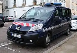 Véhicule de Mobilité Équipe (VME), en remplacement des Iveco Daily. Première livraison au début de . 3 véhicules par peloton d'intervention, pouvant transporter 6 gendarmes[15]. Avec nouvelle sérigraphie. | |