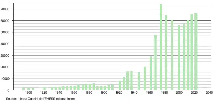 - ↑ Fiches Insee - Populations de référence de la commune pour les années 2006, 2007, 2008, 2009, 2010, 2011, 2012, 2013, 2014, 2015, 2016, 2017, 2018, 2019, 2020, 2021 et 2022.