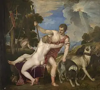Vénus et Adonis est un tableau réalisé par le peintre italien Titien en 1554. Cette huile sur toile est une peinture mythologique qui s'inspire des Métamorphoses d'Ovide. Elle représente Vénus nue tentant de retenir Adonis alors que, ses chiens en laisse, il part pour la chasse qui lui sera fatale. L'œuvre est conservée au musée du Prado, à Madrid, en Espagne. Elle a été déclinée en plusieurs versions, dont l'une se trouve à la galerie nationale d'Art ancien, à Rome.