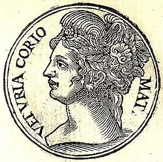 Issue de la famille patricienne des Veturii, elle devint veuve alors que son fils était en bas âge et l'éleva seule. Coriolan, ayant été chassé de Rome pour son intransigeance politique contre les tribuns de la plèbe, y revint les armes à la main à la tête des armées volsques pour se venger. Les délégués envoyés par le Sénat pour négocier la paix revinrent avec des conditions inacceptables. Une délégation des prêtres romains en habits sacerdotaux n'eut pas plus de succès. Un cortège de femmes en pleurs fut envoyé en ambassade, parmi elles Volumnie, l'épouse de Coriolan, et ses enfants en bas âge, se jeta à ses pieds pour le supplier d'épargner Rome, refusant, comme il le lui demandait, de se joindre à sa cause. Cédant aux prières de sa mère et de son épouse, Coriolan se retira alors[1].
