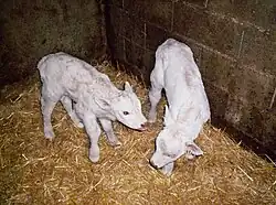 Les naissances multiples sont relativement peu fréquentes chez les bovins, et on estime à 3 % la gémellité naturelle dans cette espèce. Elle s’accompagne généralement d’une réduction de 3 à 6 jours de la durée de gestation. Les gestations gémellaires peuvent également avoir certaines conséquences sur le déroulement du vêlage. Si le risque de disproportion entre le fœtus et le bassin de la mère est moins important, il y a une plus grande probabilité de malposition et de présentation simultanée des deux fœtus. De plus, la dilatation excessive de l’utérus qui porte des jumeaux peut conduire à une inertie utérine et des contractions insuffisantes. On observe que lors d’une gestation gémellaire, un des fœtus est souvent en présentation antérieure et l'autre en présentation postérieure[9]. Les veaux jumeaux sont souvent plus faibles et souffrent plus fréquemment de maladies néonatales comme l’anoxie[3]. Le nombre de veaux mort-nés est aussi plus important[9].