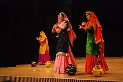 Différents styles de ghagra cholis sont portés par les femmes, allant d'un simple lehenga choli en coton comme vêtement quotidien, un ghagra traditionnel avec des miroirs embellis généralement porté pendant Navratri pour la danse garba ou un lehenga entièrement brodé porté lors des cérémonies de mariage par la mariée.