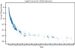 - ↑ (en) V* V533 Her -- Classical Nova sur la base de données Simbad du Centre de données astronomiques de Strasbourg.