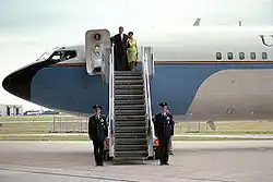 - ↑ (en-US) « The Journey of Air Force One » [archive du ], Ronald Reagan Presidential Foundation (consulté le ), p. 3