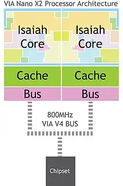 Le VIA Nano (ancien nom de code Isaiah) est un processeur 64 bits compatible x86 destiné au segment mobile de l'embarqué. Le processeur est en vente exclusivement pour les OEM. Le Nano a été annoncé fin mai 2008, soit peu après celle de l'Intel Atom son principal concurrent, après cinq années de développement par sa division CPU Centaur Technology (en). Elle est accompagnée peu après par la sortie de la révision 2.0[1] du format mini-ITX incluant le support du processeur et d'un bus PCIe 16x. Il se base sur une nouvelle architecture 64 bits conçue ex nihilo et dévoilée le [2]. Le processeur prend en charge un certain nombre d'extensions x86 spécifiques à VIA visant à améliorer l'efficacité des appareils de faible puissance. Il est associé à différents chipsets VIA VX800, VX900[3] ou VN1000. Fer de lance du fondeur VIA, le Nano souffre cependant d'une faible commercialisation dans le domaine grand public.