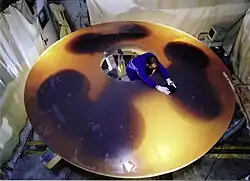 Miroir de VISTAVISTA est un télescope Ritchey-Chrétien modifié[3]. Avec un miroir primaire de 4,1 mètres de diamètre[3], c'est le plus grand télescope de sondage au monde[3]. Il comporte un seul instrument, la caméra VIRCAM (VISTA InfraRed CAMera), qui effectue des relevés photométriques infrarouges (0,85-2,4 μm) en couvrant un champ de 0,6 degré carré avec une résolution angulaire de 0,34 arcseconde. Cette caméra de 3 tonnes contient 16 détecteurs, sensibles au rayonnement infrarouge et comportant au total 67 millions de pixels. Pour éviter au faible rayonnement infrarouge venant de l’espace d'être masqué par le bruit thermique ambiant, la caméra est refroidie à -200 degrés Celsius et est scellée dans un boitier transparent permettant au rayonnement infrarouge de l'atteindre. Le développement d'une caméra fonctionnant dans le spectre visible « DarkCam » a été étudiée, mais, elle a été abandonnée en 2005 car elle a été estimée trop risquée d'un point de vue financier. Ce télescope est utilisé aux trois quarts en mode recensement. Les données - 300 gigaoctets par nuit, soit plus de 100 téraoctets par an - seront stockées dans les archives numériques de l’ESO et traitées en images et en catalogues dans les centres de données des universités de Cambridge et d’Édimbourg, au Royaume-Uni. L’ensemble des données sera publique et accessible par les astronomes du monde entier.