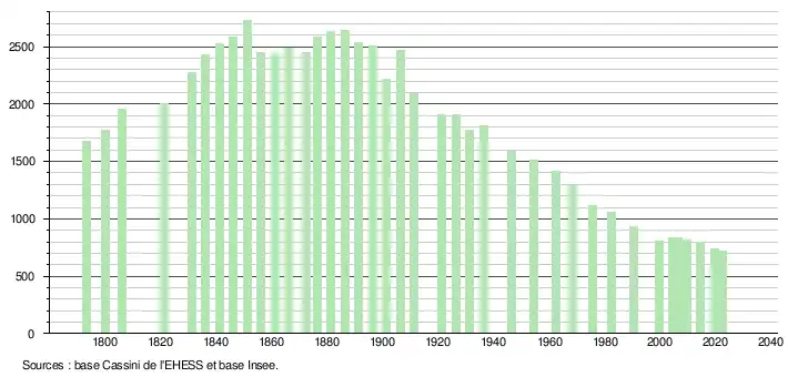 - ↑ Fiches Insee - Populations de référence de la commune pour les années 2006, 2007, 2008, 2009, 2010, 2011, 2012, 2013, 2014, 2015, 2016, 2017, 2018, 2019, 2020, 2021 et 2022.